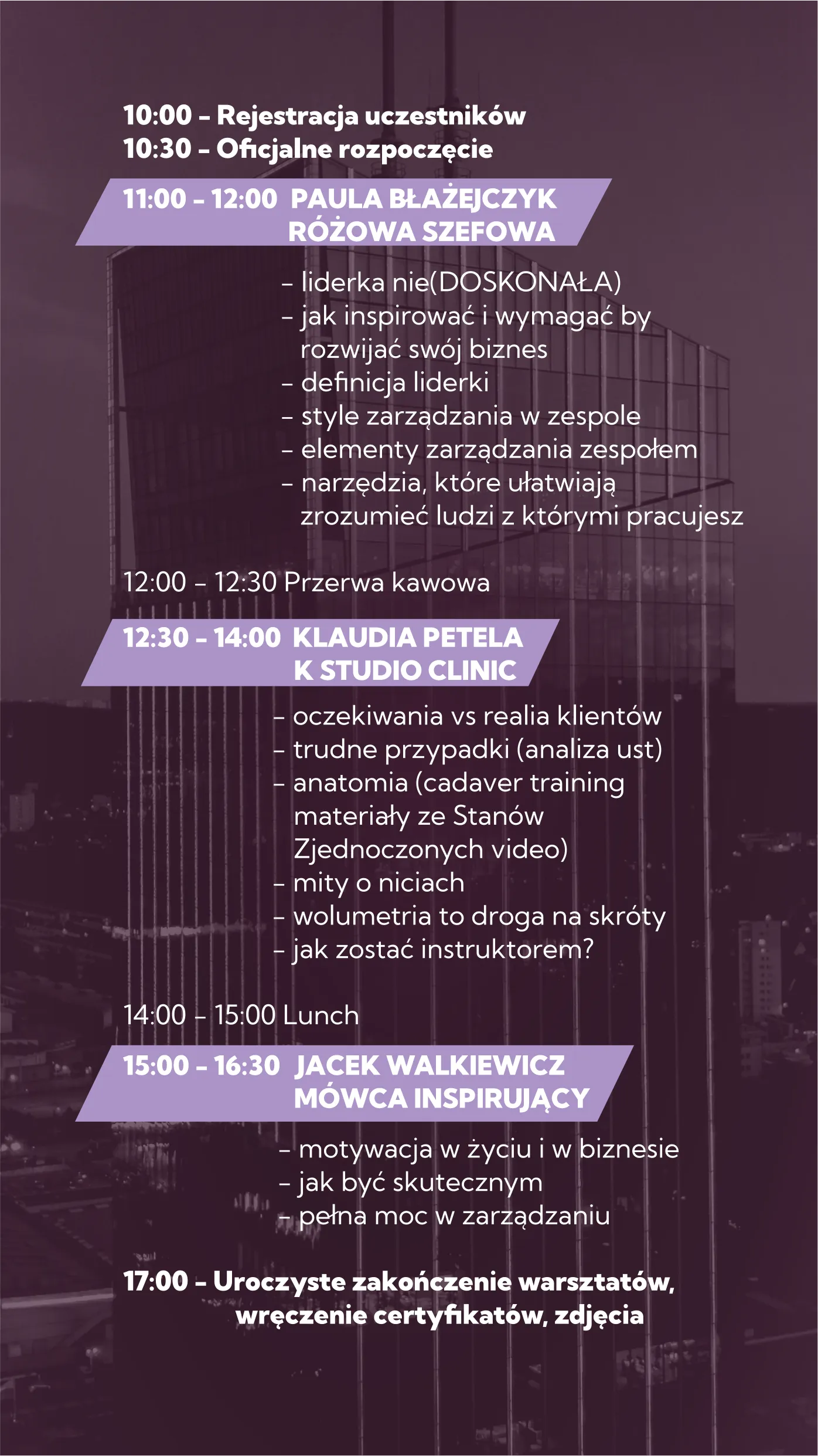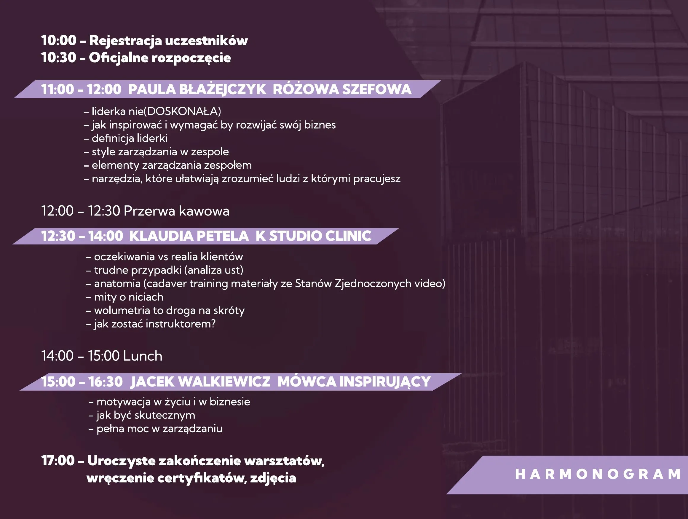 Zapraszamy do udziału w naszych innowacyjnych warsztatach, gdzie łączymy wiedzę z mecydyny estetycznej, motywację oraz sprawdzone metody zarządzania w klinikach.