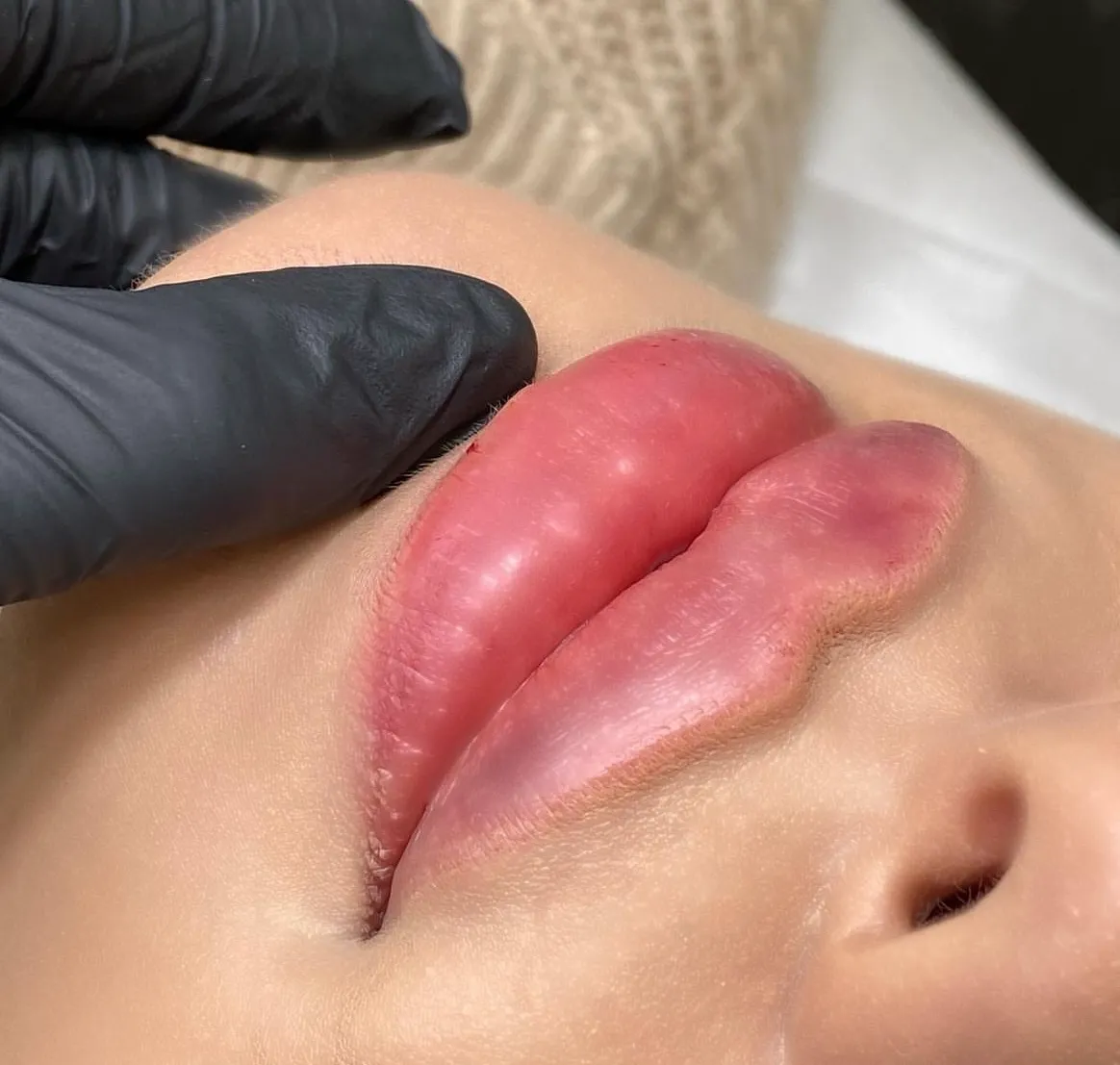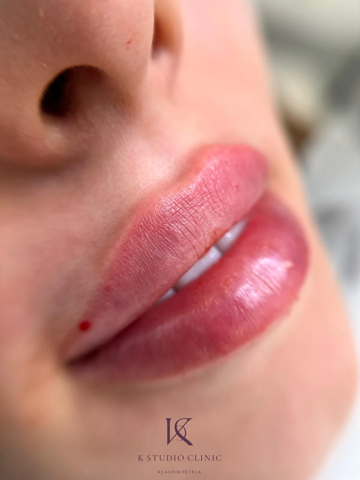 Przez około 2 tygodnie nie należy masować i nadmiernie dotykać ust (przez pierwsze dni- unikać pocałunków)